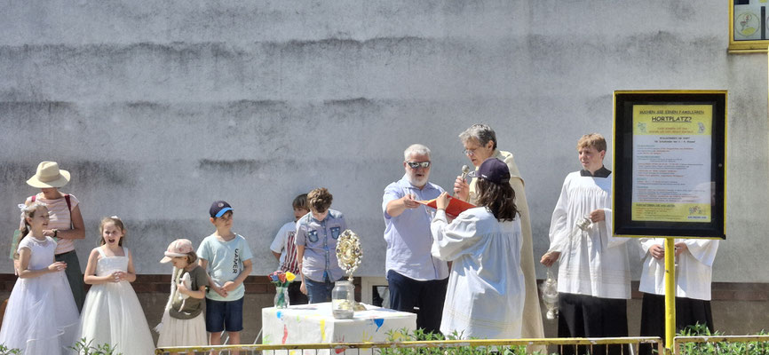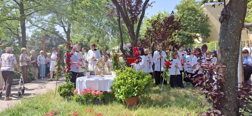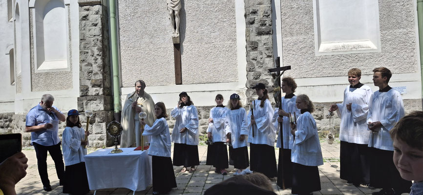 Es ist wieder Fronleichnam. Unsere Pfarrgemeinde feiert gemeinsam mit Pfarrer Karol Giedrojc und Rektor Dietmar Neumann vom Marianneum und zieht in einer kurzen Prozession durch einen kleinen Teil von Hetzendorf. Viele Ministranten sind zur Stelle und bereiten durch ihre Hilfe dem Fest einen würdigen Rahmen. Kurz vor dem Gottesdienst funkt noch ein Platzsprecher einer Veranstaltung am benachbarten Sportplatz ins Funknetz in der Rosenkranzkirche herüber, weswegen sogleich nur Mikrofone mit Kabel verwendet werden.